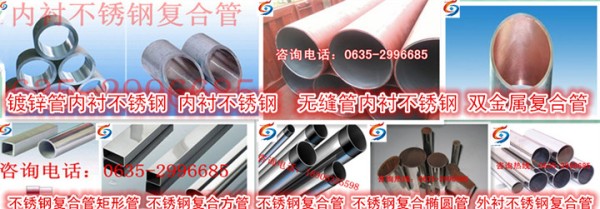 山東飛龍不銹鋼復(fù)合管有限公司是制造、銷(xiāo)售不銹鋼管;不銹鋼內(nèi)、外復(fù)合管及復(fù)合管制品;鋼材、建材的加工。不銹鋼外覆復(fù)合管具有外表美觀(guān)、防腐蝕、強(qiáng)度高、價(jià)廉的特點(diǎn),可廣泛應(yīng)用于市政工程的護(hù)欄,公路交通設(shè)施和路橋欄桿,網(wǎng)架鋼構(gòu),場(chǎng)館設(shè)施工程,高檔樓梯制造,路燈桿、旗桿,廣告牌架,車(chē)船的扶手、行李架;民用的窗簾桿、晾衣桿及家俱,醫(yī)療健身器械,自行車(chē)、摩托車(chē)把、保險(xiǎn)杠,包裝、紡織機(jī)械配件等領(lǐng)域。規(guī)格有管徑Ф12.7-Ф219mm。內(nèi)襯不銹鋼復(fù)合管是在鋼管內(nèi)復(fù)合不銹鋼層,它具有機(jī)械強(qiáng)度高、抗沖擊性強(qiáng)、耐高溫、耐腐蝕、衛(wèi)生等級(jí)高、不結(jié)垢、流體阻力小、連接方式與鋼管相同,此復(fù)合管應(yīng)用范圍廣,可以作為高溫?zé)崴?、熱蒸汽、高壓力管道。是一種安全性能高、使用壽命長(zhǎng)、連接方式簡(jiǎn)單、綜合性能很佳的復(fù)合管材;又經(jīng)營(yíng)各種鐵藝圍欄,石材欄桿,建材等項(xiàng)目; 我公司實(shí)力雄厚,信譽(yù)度高,以誠(chéng)信為本,愿與各界朋友合作,竭誠(chéng)為您服務(wù),歡迎客戶(hù)光臨指導(dǎo)!